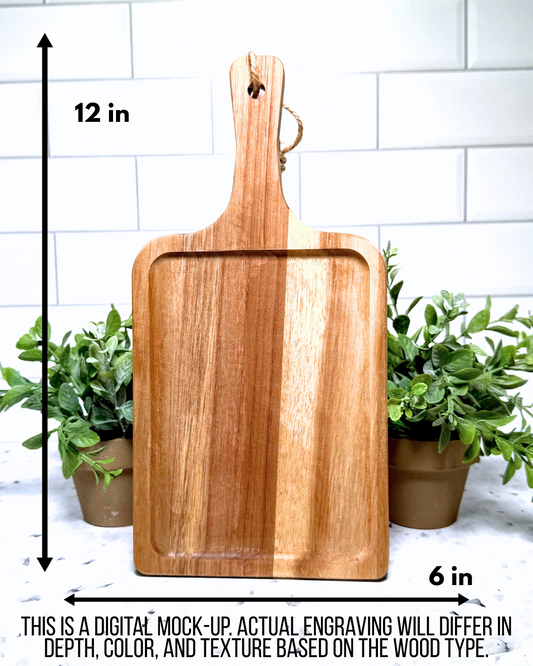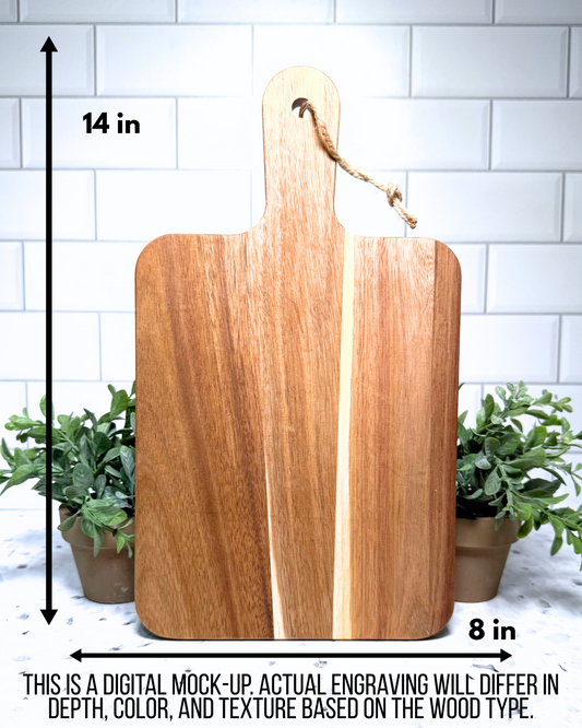 The Classic Paddle CUSTOM Charcuterie and Cutting Board – 8" x 14" Acacia