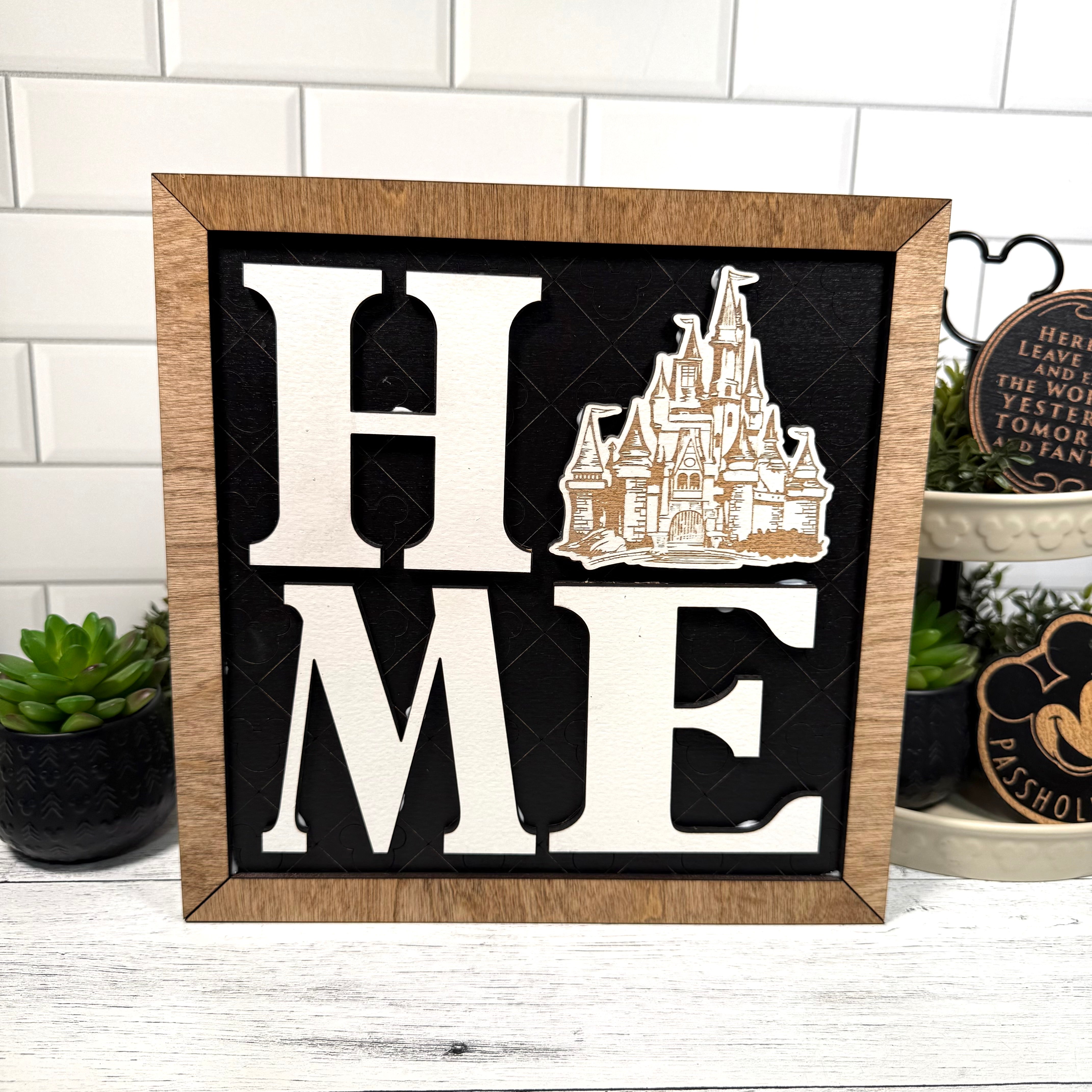 NEW Home Square Framed Sign | Black Background | White Letters | White Castle