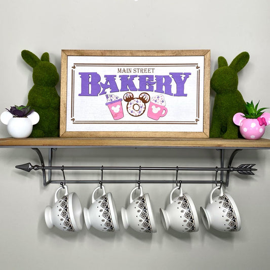 Main Street Bakery | Gray | Hot & Iced Coffee |Park-Inspired Framed Sign