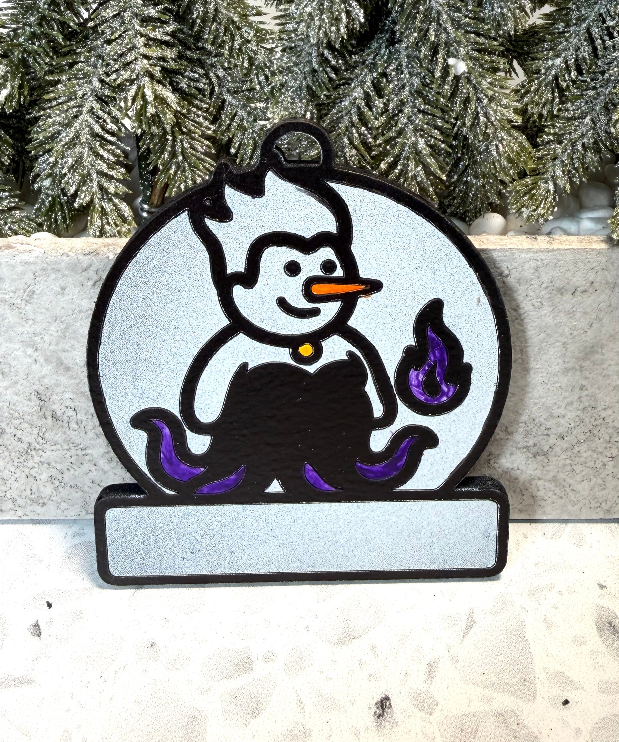 Blue Flame Snowman Villain Ornament—Personalize