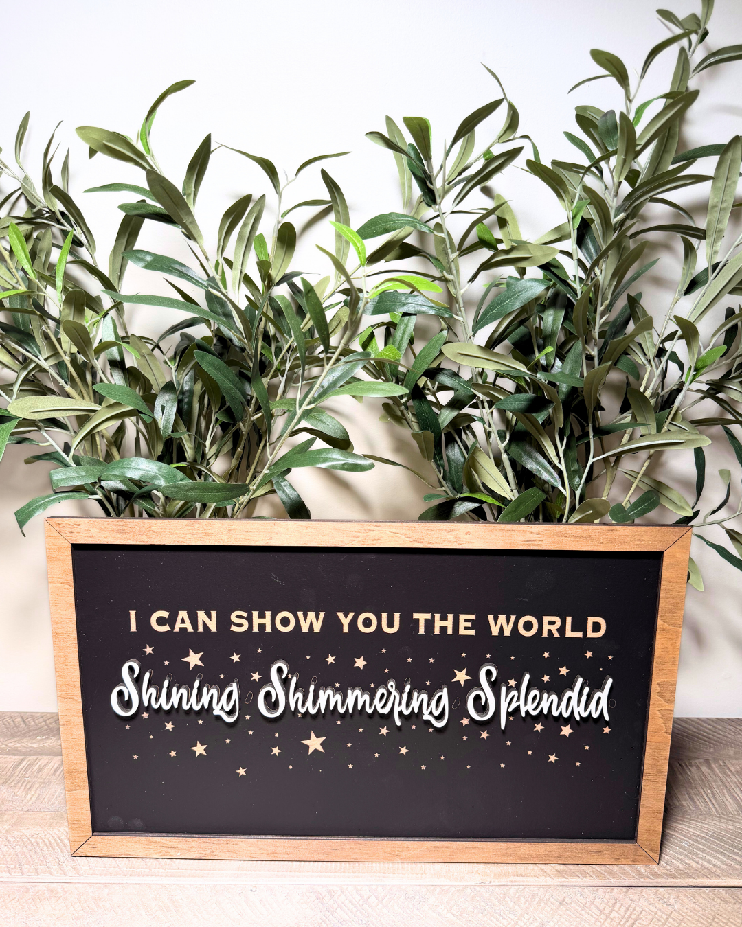 • Materials: Laser-cut wood letters, hand-painted background, framed in hand-stained wood