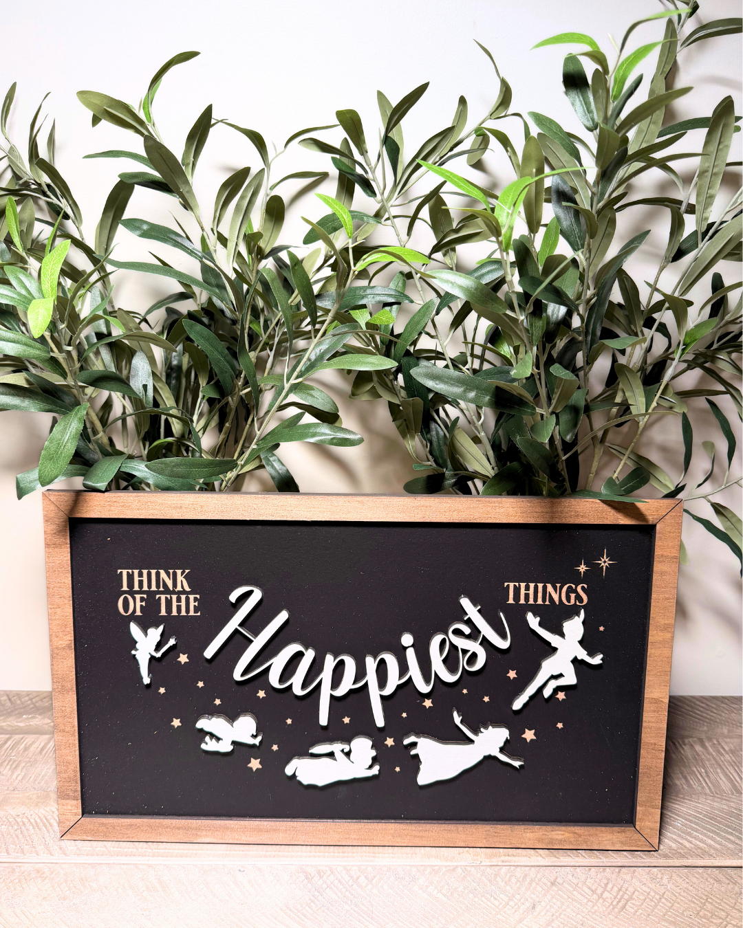 Think Of The Happiest Things | Flying To Neverland Framed Sign - Handmade by JRW Design Co.