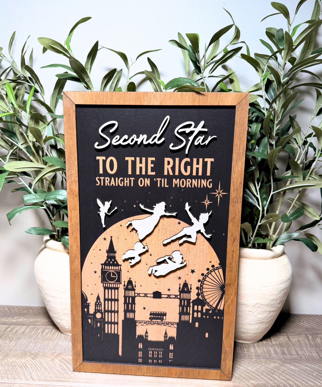 Second Star To The Right Straight On 'Til Morning | London Skyline Framed Sign - Handmade by JRW Design Co.