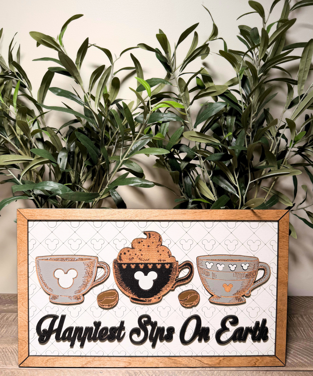 Happiest Sips On Earth | Coffee Cups Park-Inspired Framed Sign - Handmade by JRW Design Co.