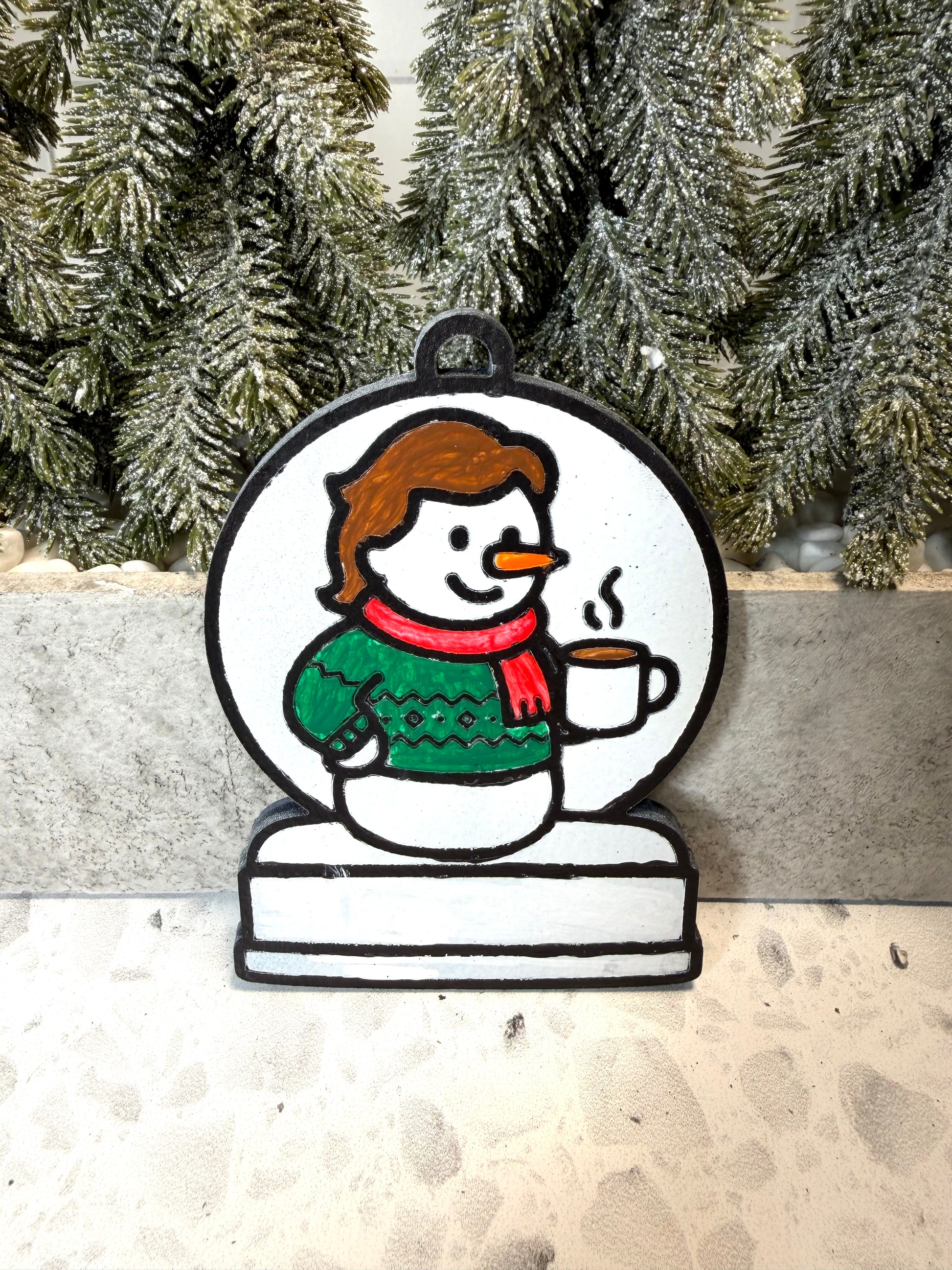 Cozy Coffee Lover Girl Snowman Ornament—Customizable