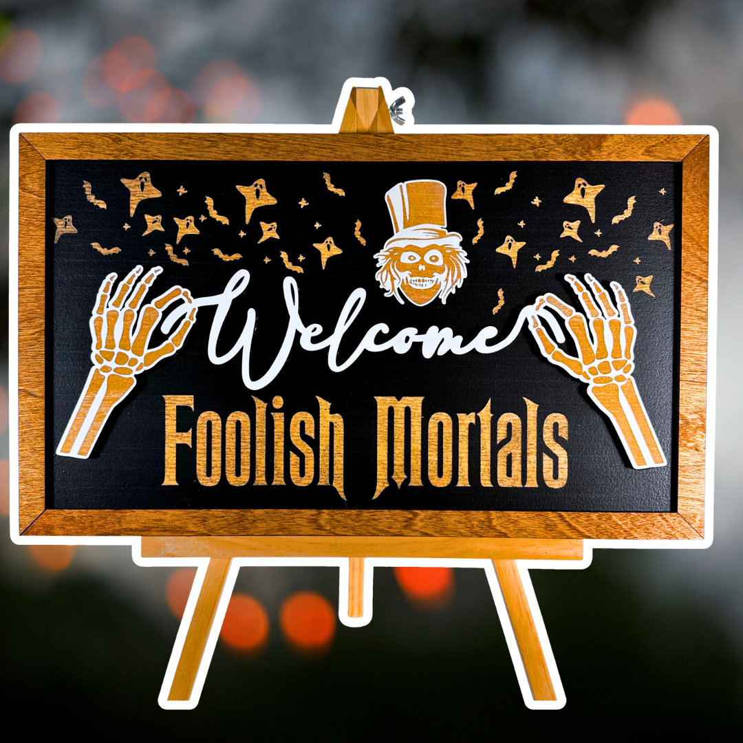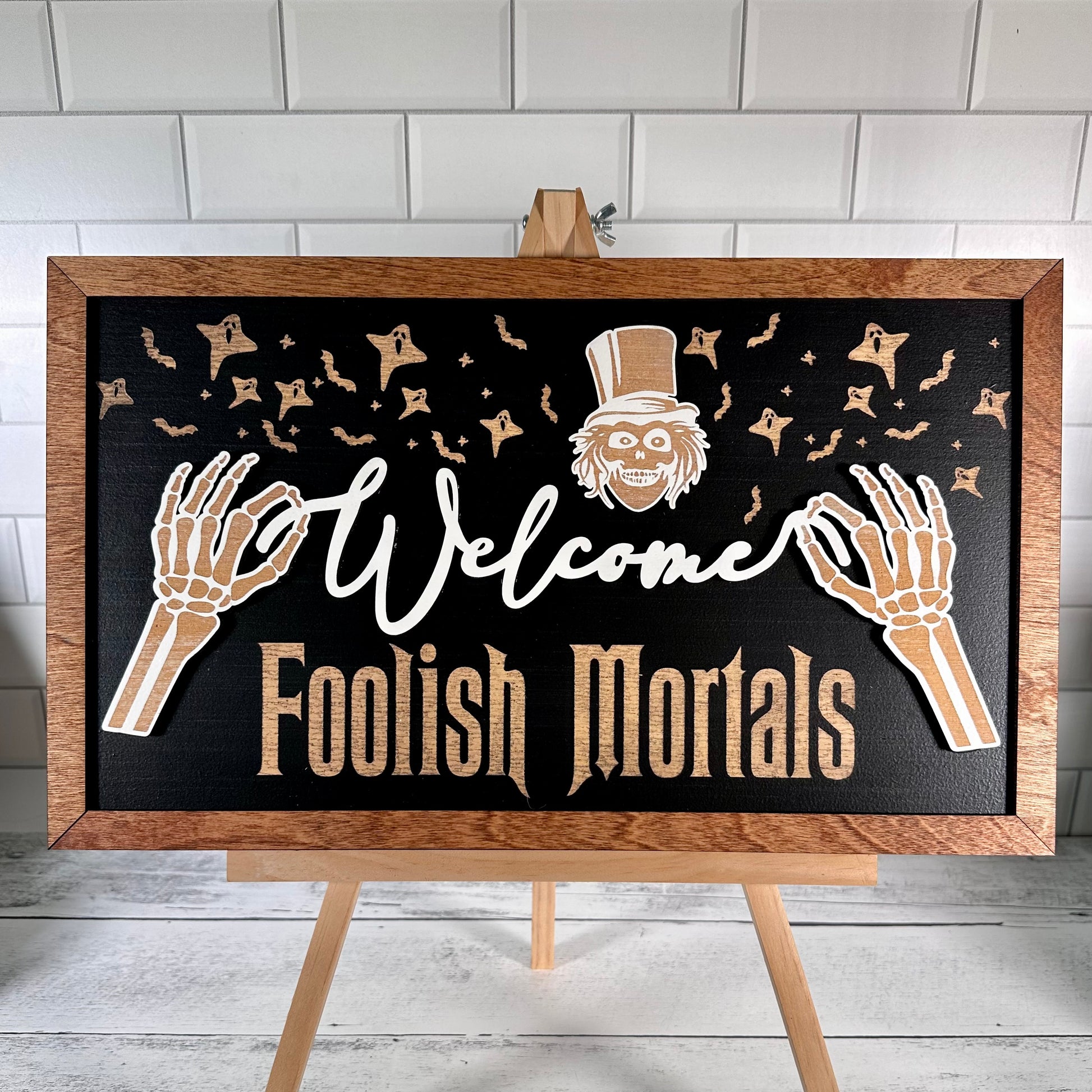 Welcome Foolish Skeleton Framed Halloween Sign